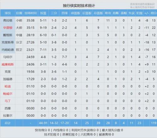 比赛还没结束,东契奇跟里夫斯已经联手砍下70+,独行侠匹配不上这种进攻强度。最后4分钟,湖人拉开到两位数。独行侠全队8人得分上双,已经尽力了,可惜缺少一个进攻大杀器。全场结束,湖人129-119战胜独行侠。