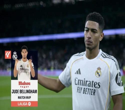 西甲第17轮,皇家马德里主场2-0击败塞维利亚,此役打入一球的贝林厄姆当选西甲官方全场最佳球员。