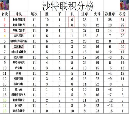 北京时间1月1日凌晨,2025-26赛季沙特联赛第12轮结束了最后3场比赛的在争夺。经过一番鏖战,吉达联合客场3:1击败新未来城体育,利雅得青年人主场2:3不敌胡拜尔库迪西亚,利雅得新月客场3:1战胜拉斯永恒。
