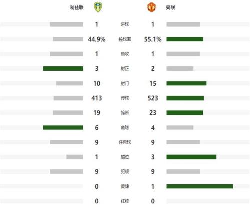场面略显被动的利兹联,在第35分钟差一点在主场取得领先,勒温接到队友在右路送出的传中后,直接头球攻门,但运气不佳,皮球击中立柱被弹出,半场比赛结束之前,卡塞米罗和约罗在对方禁区内完成了一次头球接力,但利兹联门将神扑化解了险情,让两支球队带着0-0的比分,回到了更衣室。