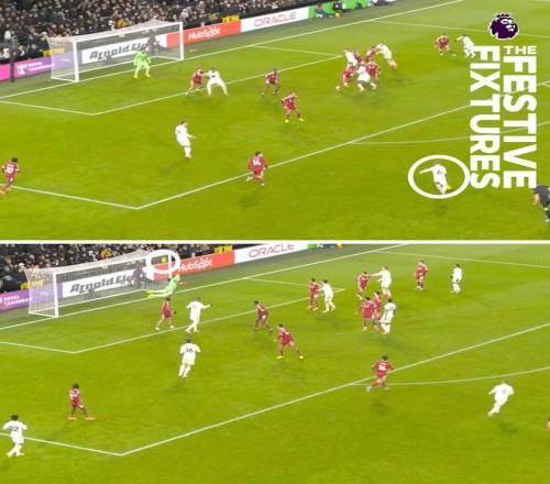 这个进球在经过慢镜头回放定格来看,确实是有越位嫌疑。
