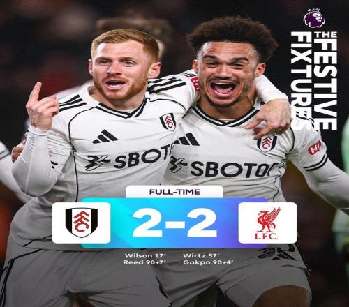 最终,利物浦客场2-2战平富勒姆,双方各取1分。