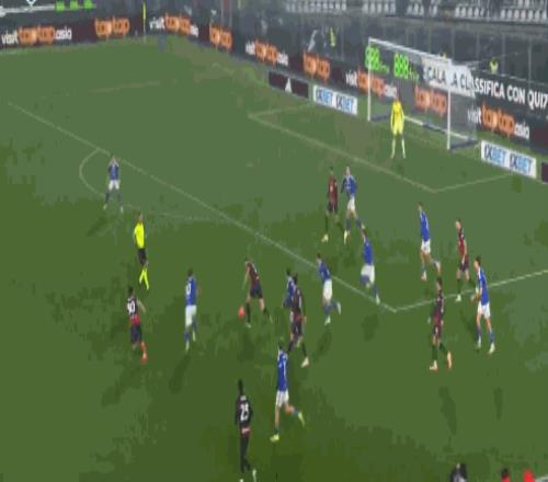 第45+1分钟,萨勒马科尔斯前场反抢送出直塞,拉比奥特跟进对抗后倒在禁区内,主裁第一时间判罚点球,VAR介入维持点球原判,恩昆库主罚被扑了一下还是命中,米兰扳平比分。