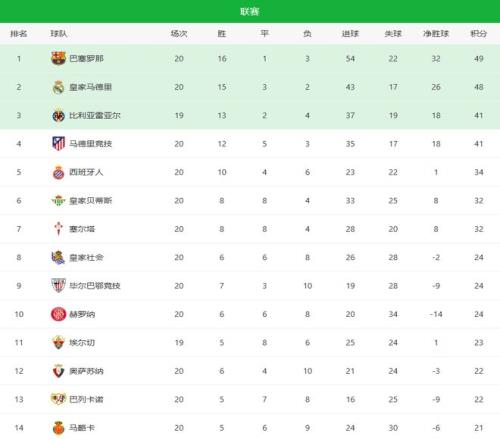 随着巴萨12+维拉01!西甲、英超最新积分榜出炉!非洲杯大结局